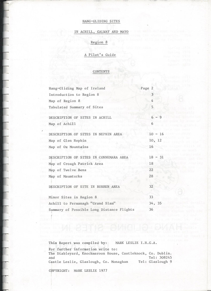 The first three pages of the Achill, Mayo and Galway Flying Site Guides