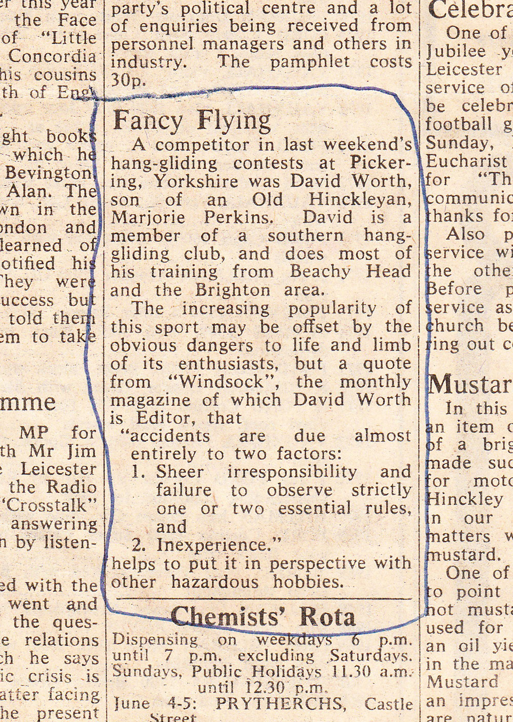 David Worth 3rd North Devon Sailwing Club 13th Feb 1977 |